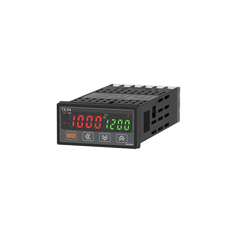 TK4N-24RN Controlador de temperatura/procesos PID estándar de alta precisión de 4 dígitos. Diseñado para control estándar. Ciclo de muestreo de 50ms. Tamaño DIN 48WX24H con profundidad de 91.8Dmm. Salida de control 1 tipo: Relay. 2 alarmas. Tensión de alimentación: 100-240VCA. Métodos de control: ON/OFF, P, PI, PD, Control PID. Permite entrada de termopar: K, J, E, T, B, R, S, N, C, G, L, U, Platinel II y RTD: DPt100O, DPt50O, JPt100O, Cu100O, Cu50O, Nikel 120O. Analog: 0-100mVCD, 0-5VCD, 1-5VCD, 0-10VCD,0-20mA, 4-20mA. Grado de protección frontal: IP65.