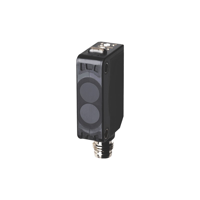 BJ1M-DDT-C-P Sensor fotoeléctrico rectangular de larga distancia de sensado, con detección tipo difuso reflectivo a una distancia máxima de operación de 1m. Con ajuste de sensibilidad. Indicado para detectar material opaco y translúcido. Rango de tensión de alimentación: 12-24VCD. Modo de operación: Light ON/Dark ON (establecido por interruptor). Salida de control tipo PNP colector abierto. Fuente de luz: LED infrarrojo (850 nm). Tipo de conexión: conector M8. Protección: IP67.